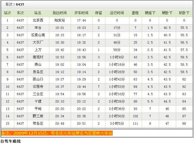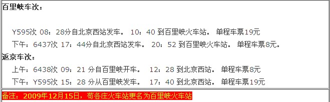 火車(chē)乘車(chē)路線,野三坡百里峽列車(chē)時(shí)刻表
