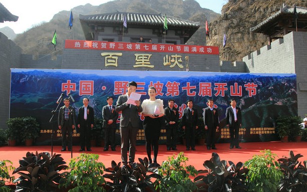 百里峽景區(qū)門(mén)口人頭攢動(dòng),來(lái)自全國(guó)各地的兩萬(wàn)多名游客和40多家媒體記者,共同見(jiàn)證了野三坡第七屆開(kāi)山節(jié)的盛大開(kāi)幕式。隆重的祭山儀式后,隨著野三坡老人官宏亮的開(kāi)山吶喊,野三坡拉開(kāi)了2014年的旅游大幕。