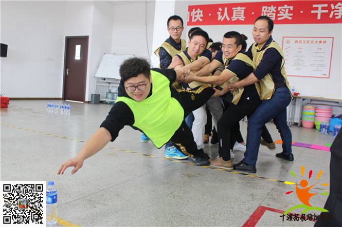 1、北京拓展教練:“同志們請注意,我們現在的戰場上條件很艱苦,要比上甘嶺還要艱苦,沒有水,缺水怎么辦,我們要想辦法解決。大家看到了嘛,繩子圍成的圈里有水,但是里面布滿是地雷,我們不能碰到圈里任何地方,只要地雷一響,敵機馬上會飛過來轟炸我們。而且我們只有20分鐘,時間一過,大家都有危險。我們的工具只有這兩個繩。”